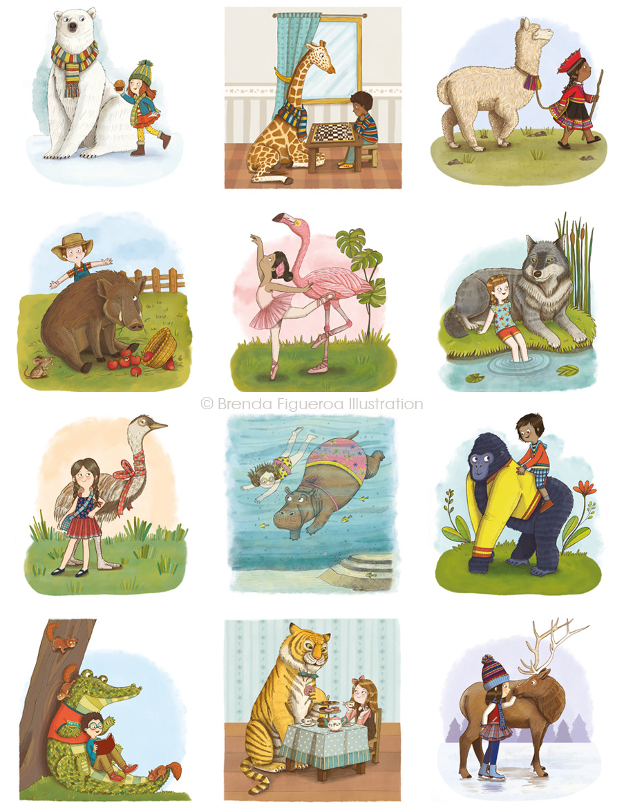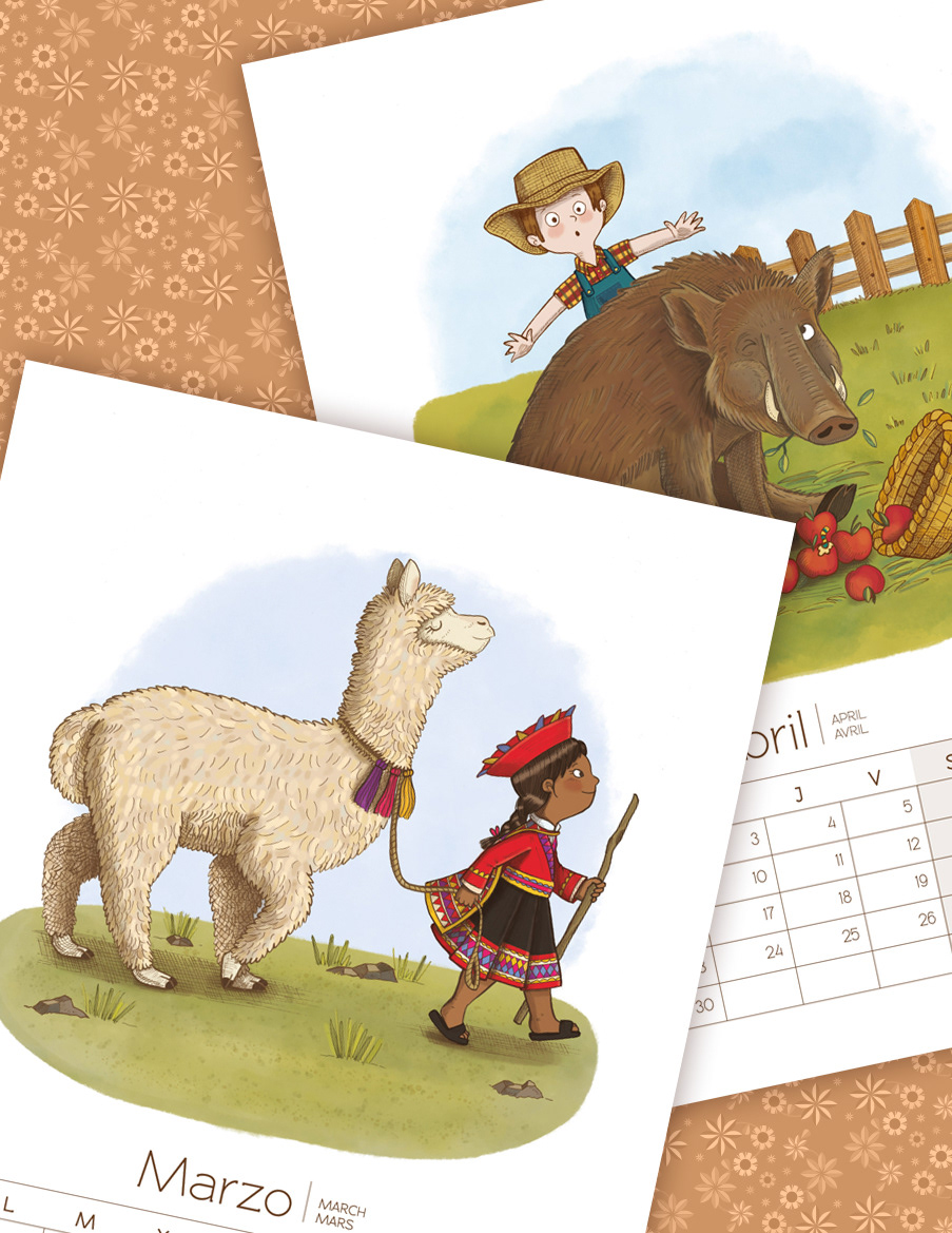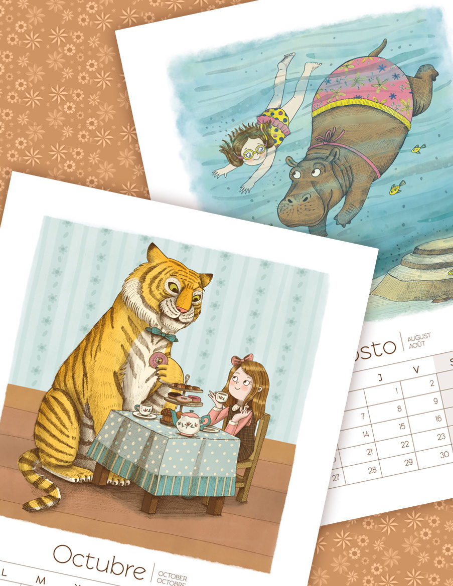 Personal project. It started as my concept for 2018's #Inktober challenge, and then became a wall calendar filled with colorful images of kids and their whimsical animal friends, Available for purchase on my
